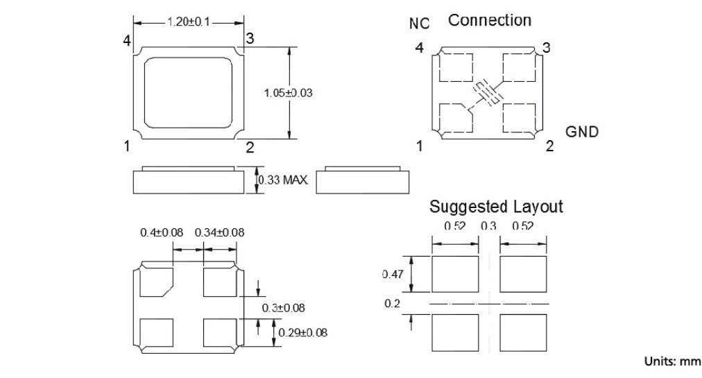 建議將石英晶振輸出負載安裝在盡可能靠近振蕩器的地方(在20 mm范圍之間).