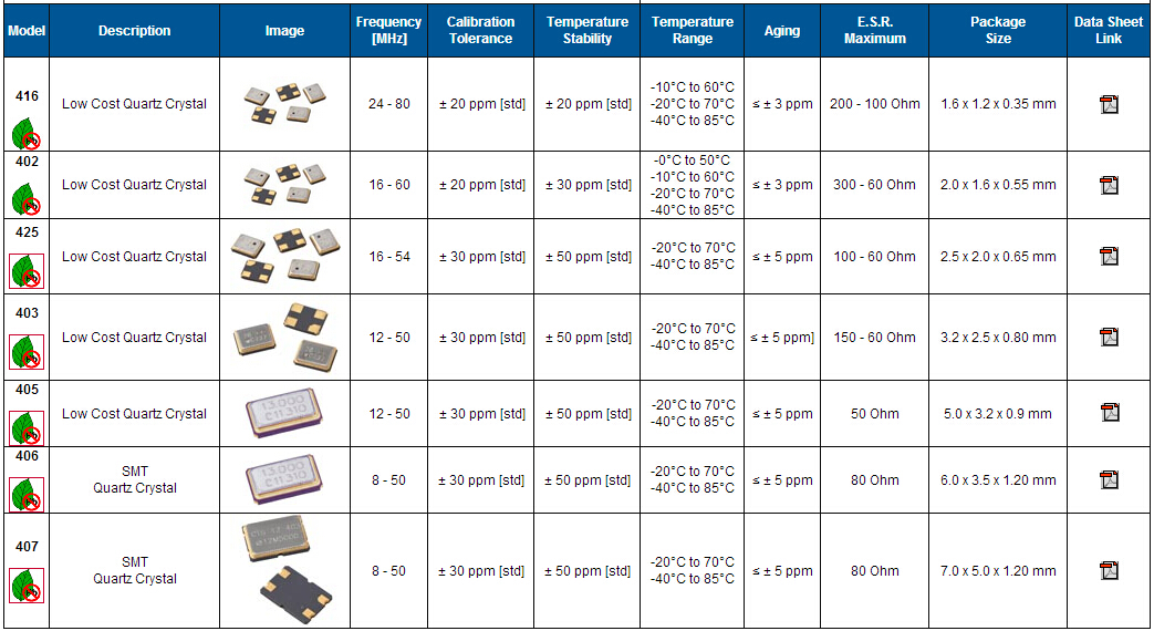 頻率穩(wěn)定度公差(工作溫度范圍,引用到25°C閱讀) | ±50 ppm, Standard | |