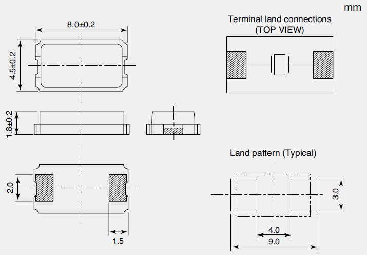 標(biāo)準(zhǔn)頻率(L×W×H : mm) | 8.0×4.5×1.8 | |