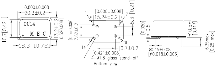 石英晶振規格 | 單位 | OC14E5A, OC14E5GA 20.3-13.2mm 晶振說明 | 進口振蕩器基本條件 |