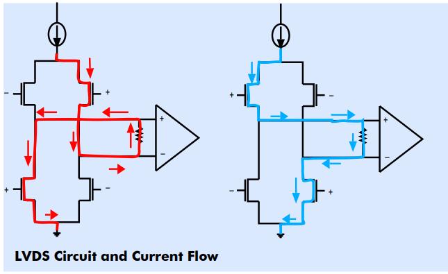 LVDS與其他邏輯接口不同,因為它不使用電壓波動,而是使用電流波動。它通過控制流經電路的電流的極性來工作。