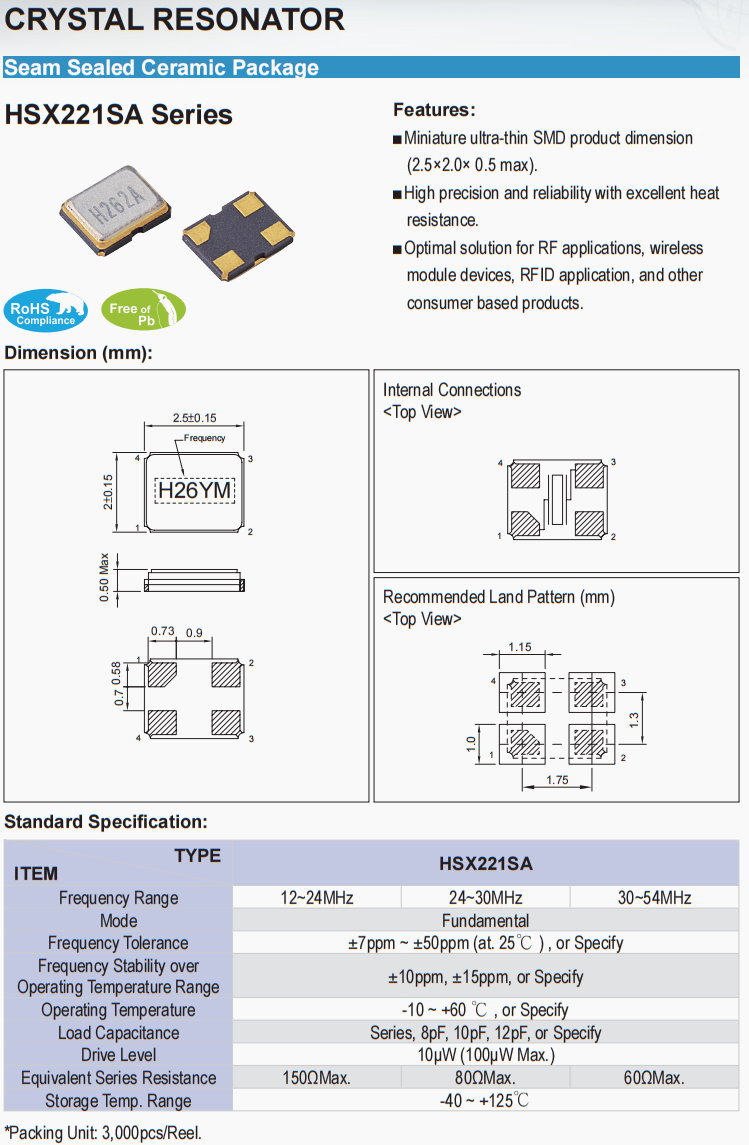 X2B030000BK1H晶振,加高小尺寸晶振,6G通訊衛(wèi)星晶振,臺(tái)灣HELE晶振公司,加高晶振,SMD晶振,小尺寸晶振,3225晶振,高品質(zhì)晶振,低損耗晶振,高精度晶振,貼片晶振,石英晶體,無源晶振,四腳晶振,無人機(jī)晶振,北斗衛(wèi)星晶振,電腦主板晶振,智能穿戴設(shè)備晶振,醫(yī)療設(shè)備晶振。特點(diǎn):微型超薄SMD產(chǎn)品尺寸。高精度、可靠性高,耐熱性好。針對(duì)射頻應(yīng)用、無線模塊設(shè)備、RFID應(yīng)用和其他基于消費(fèi)者的產(chǎn)品的優(yōu)化解決方案。